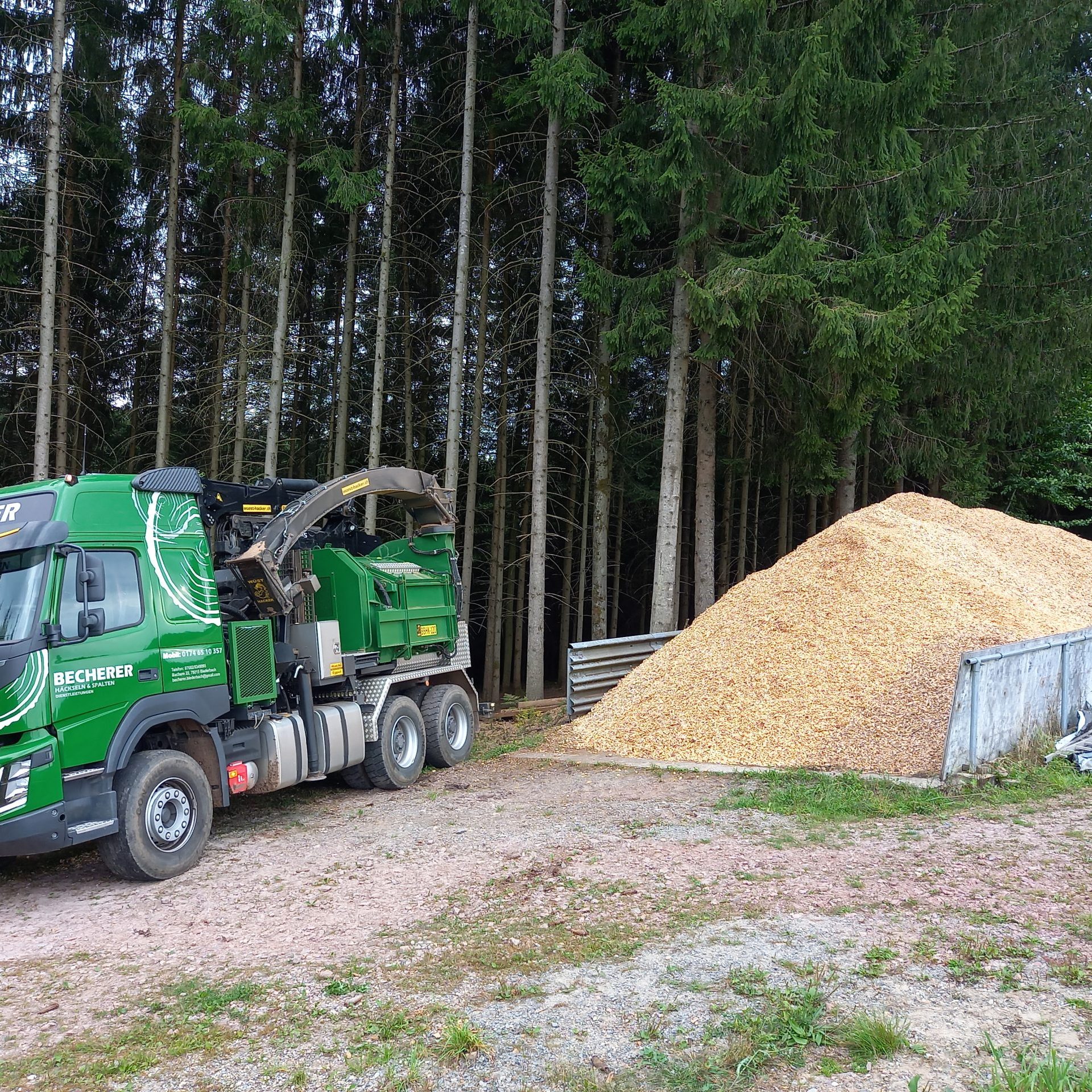 Unter Dach getrocknete oder auch frische Hackschnitzel können nach Bedarf angeliefert oder selbst abgeholt werden. Es ist aber auch möglich Hackmaterial an uns zu verkaufen. Vorgerichtete Häckselhaufen werden von uns selbst gehackt und abtransportiert.